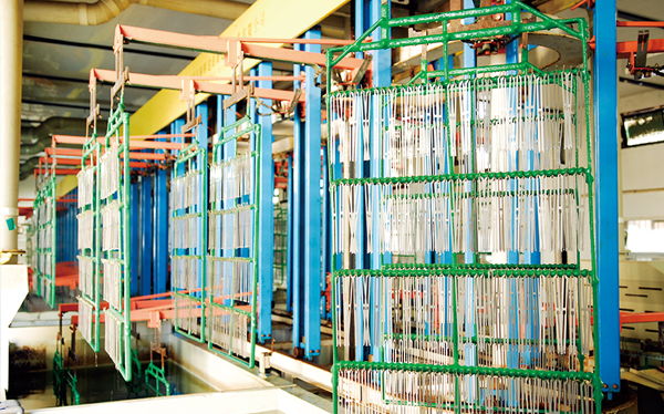 公司現(xiàn)有固定資產(chǎn)6000余萬元,員工300余人,現(xiàn)具有年產(chǎn)噴氣異型筘12萬米,劍桿筘32萬米,噴水筘5萬米,綜框20萬片,鋼片綜2億片,停經(jīng)片1.5億片, 織軸1.2萬套的生產(chǎn)能力。公司“越泉”商標(biāo)被評(píng)為“中國(guó)馳名商標(biāo)”。公司通過ISO9001 :2015國(guó)際質(zhì)量體系認(rèn)證,ISO14001:2015國(guó)際環(huán)境管理體系認(rèn)證,ISO45001:2018國(guó)際職業(yè)健康安全管理體系認(rèn)證,噴氣織機(jī)用鋼筘和織機(jī)用鋁合金綜框獲得“浙江制造”品牌認(rèn)證,公司擁有自營(yíng)進(jìn)出口權(quán),產(chǎn)品暢銷全國(guó)并遠(yuǎn)銷印度、巴基斯坦、土耳其、埃及、哥倫比亞、意大利等國(guó)家和地區(qū)。